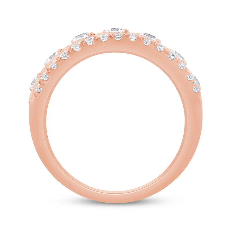 A mesmerizing design of round diamonds are on display in this beautiful and unique women’s anniversary band. Crafted in romantic 10K rose gold, the ring has an impressive total diamond weight of 1 carat. From the Now & Forever® bridal collection.