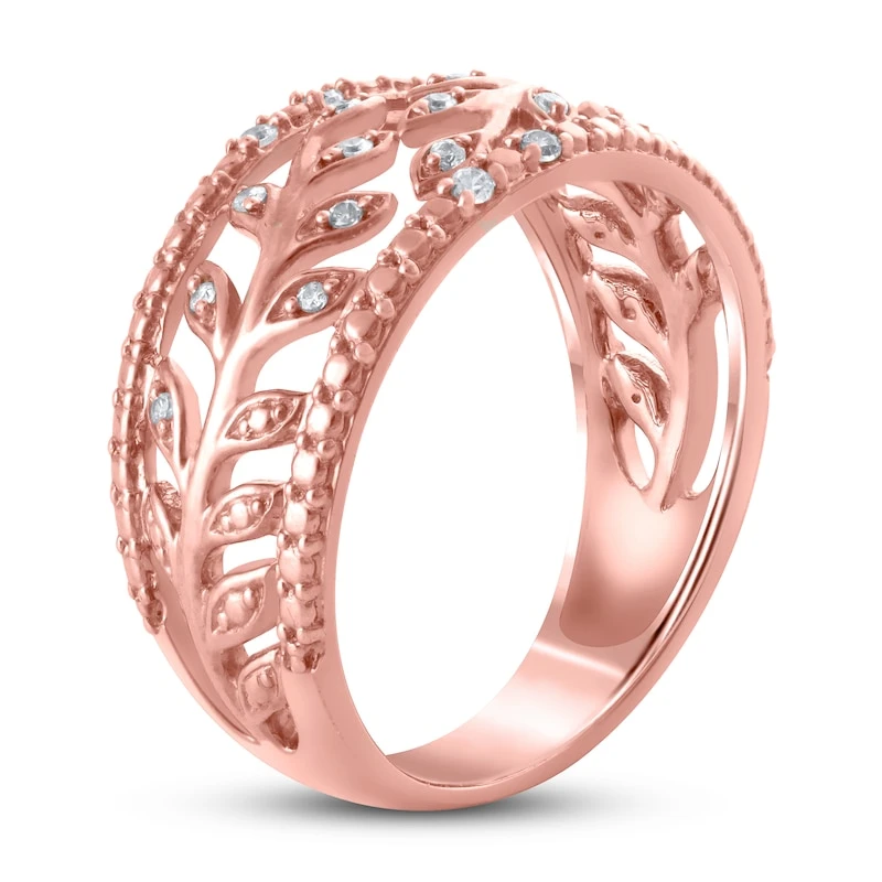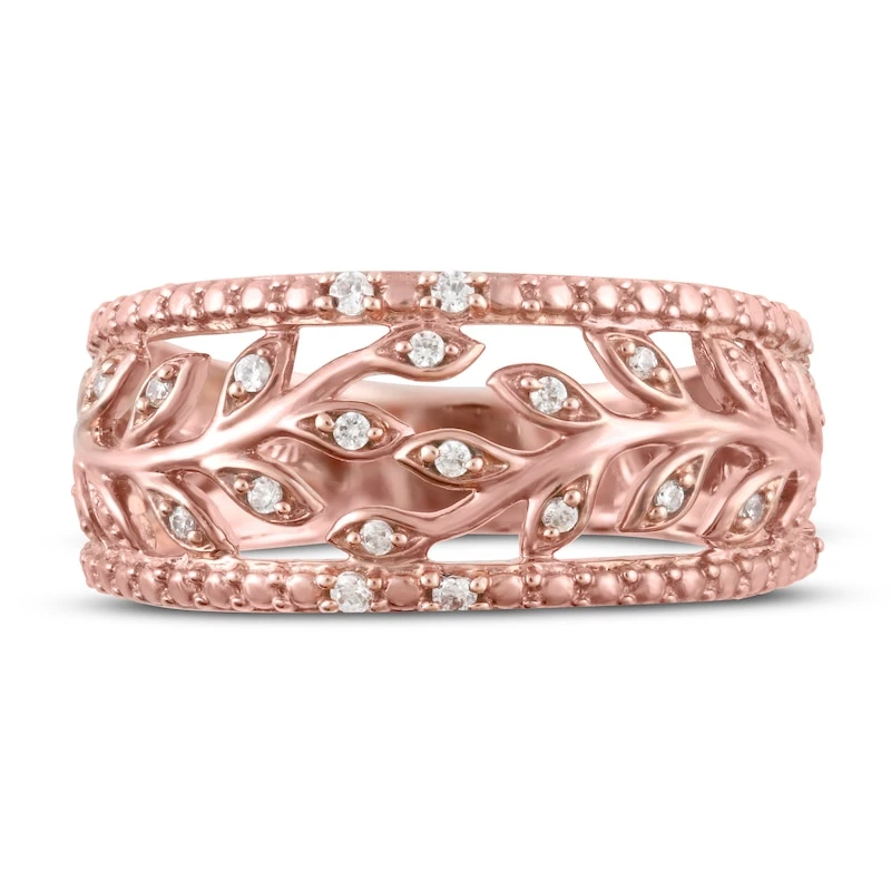 Inspired by nature, this whimsical anniversary ring for her is crafted from 10K rose gold. Round diamonds adorn throughout the design and have a total weight of 1/10 carat. From the Now & Forever® Bridal Collection.