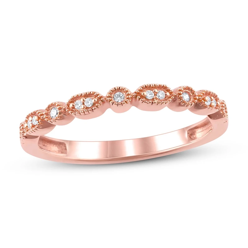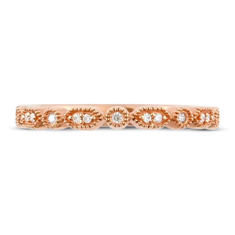 This romantic anniversary ring for her features alternating geometric shapes with embedded sparkling round diamonds. Crafted from 10K rose gold, this ring has a total diamond weight of 1/15 carat. From the Now & Forever® Bridal Collection.