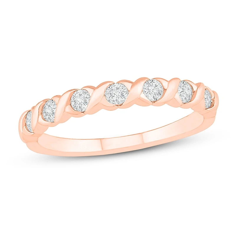 Diamond Contour Anniversary Ring 1/2 Ct Tw Round-cut 14K Rose Gold