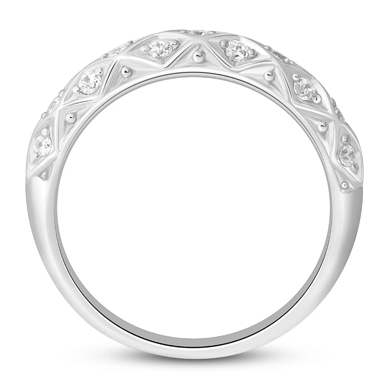 Celebrate another year of your love with this gorgeous diamond anniversary ring for her. The 10K white gold band has a unique design embellished with sparkling round diamonds throughout, giving the ring a total diamond weight of 1/4 carat. From the Now & Forever® bridal collection.