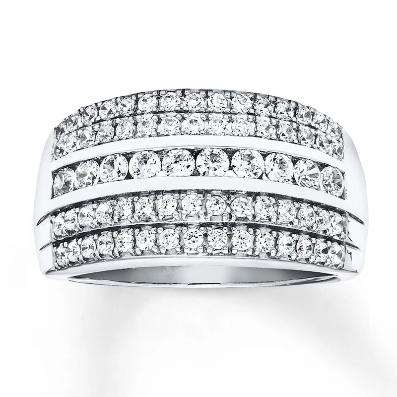 This magnificent anniversary ring for her features rows of dazzling diamonds totaling 1 carat. The ring is styled in beautiful 14K white gold.