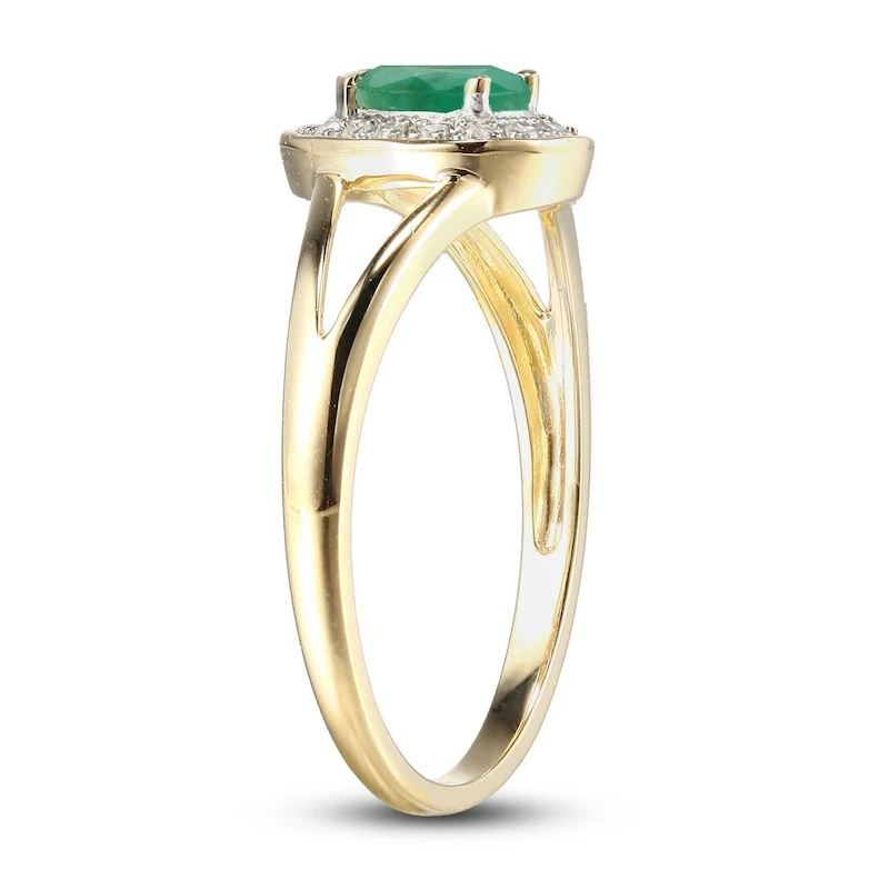 Emerald & Diamond Ring 1/20 Ct Tw 10K Yellow Gold