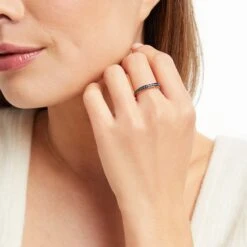 Black Diamond Anniversary Ring 1/4 Ct Tw Round-cut 10K White Gold