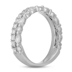 Diamond Anniversary Ring 1 Ct Tw Round/Baguette 14K White Gold