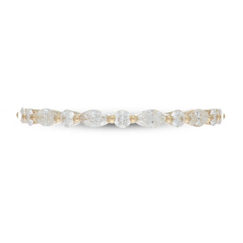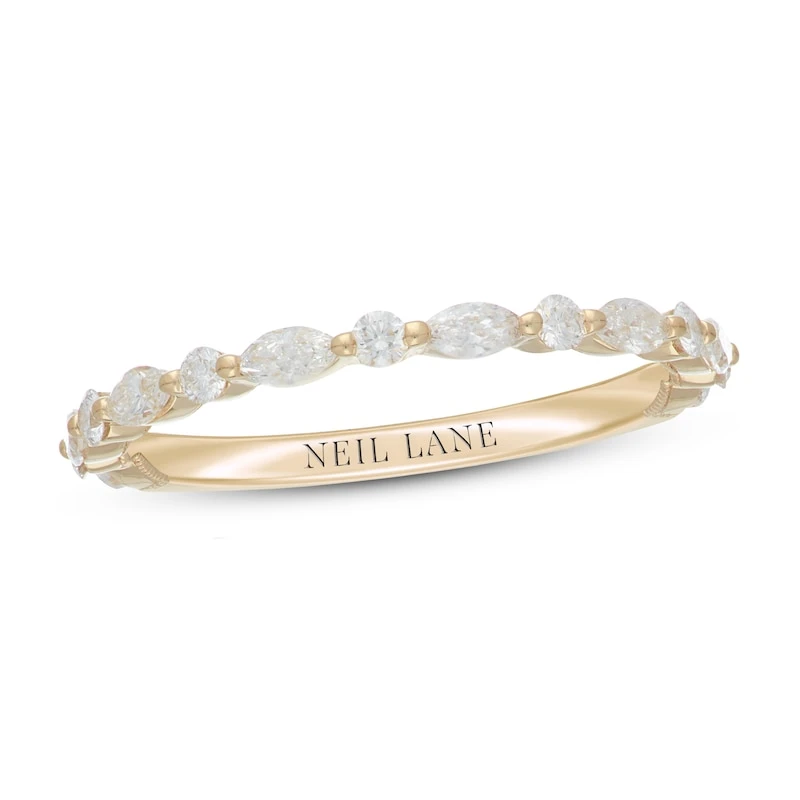 This beautiful anniversary ring from the Neil Laneâ„¢ Premiere collection features a row of alternating independently-certified round and marquise-cut diamonds. The 14K yellow gold ring has a total diamond weight of 1/2 carat and is finished with classic milgrain detailing.