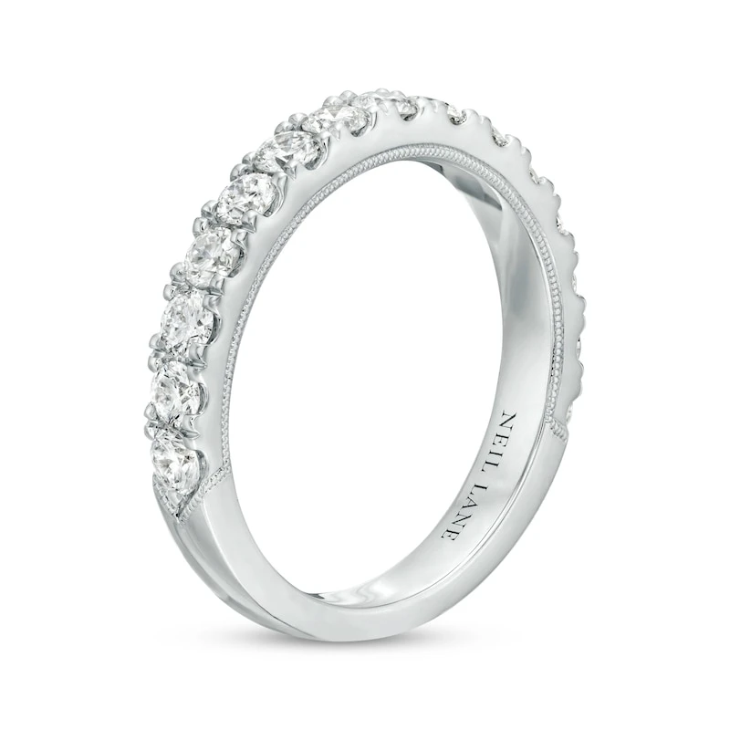A beautiful complement to a Neil Lane Bridal® engagement ring or wedding band (sold separately), this brilliant anniversary band showcases a line of round diamonds totaling 1 carat in weight. Milgrain beading lines the inner edge of the 14K white gold band for the finishing touch.