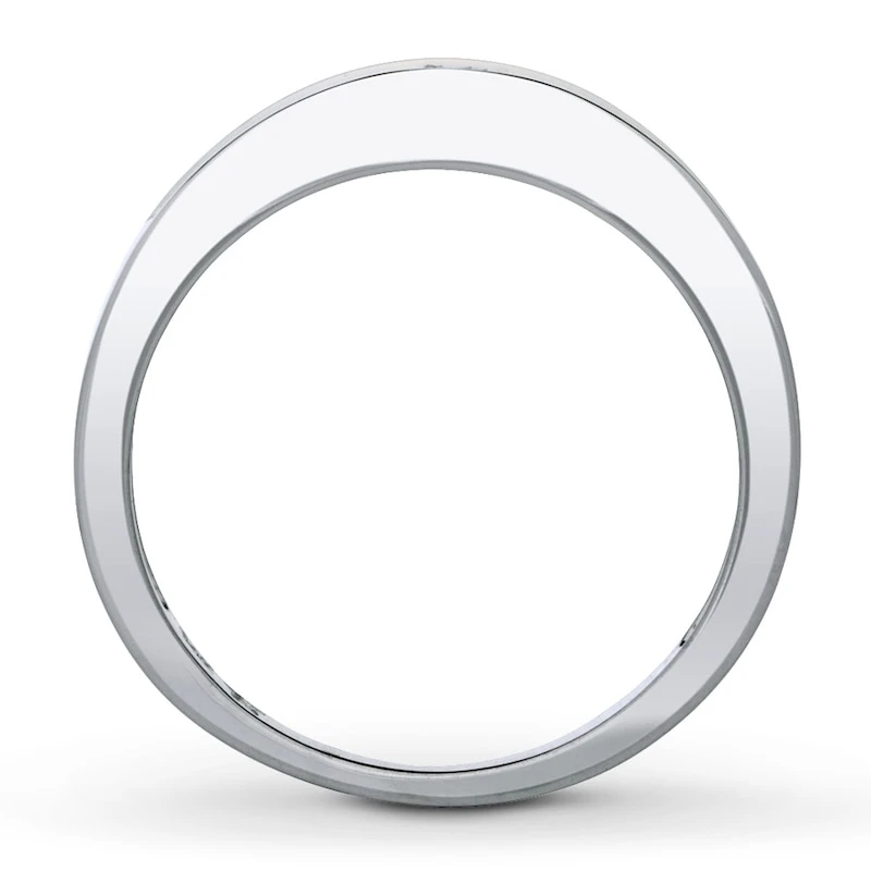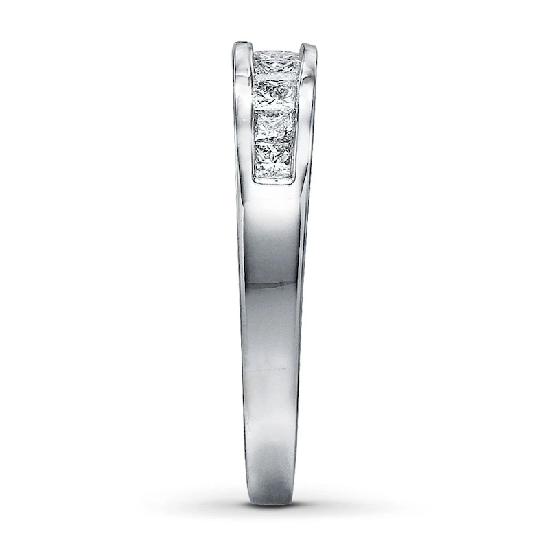 Crafted of 14K white gold, this 1/2 carat total weight diamond band is the perfect way to tell her “I forever do.” Featuring a row of sparkling princess-cut diamonds in a channel setting. Available online while supplies last. Previously Owned Treasures are not eligible for in-store pick-up. Previously Owned Treasures may only be shipped either to your home address or to an alternate address. Price comparison based on new item pricing.