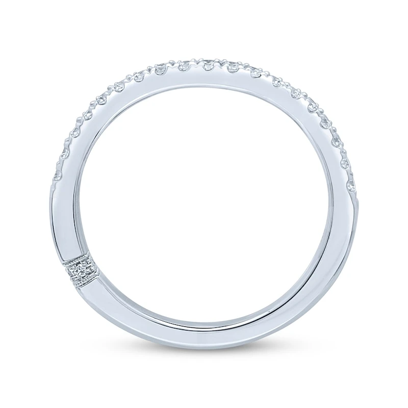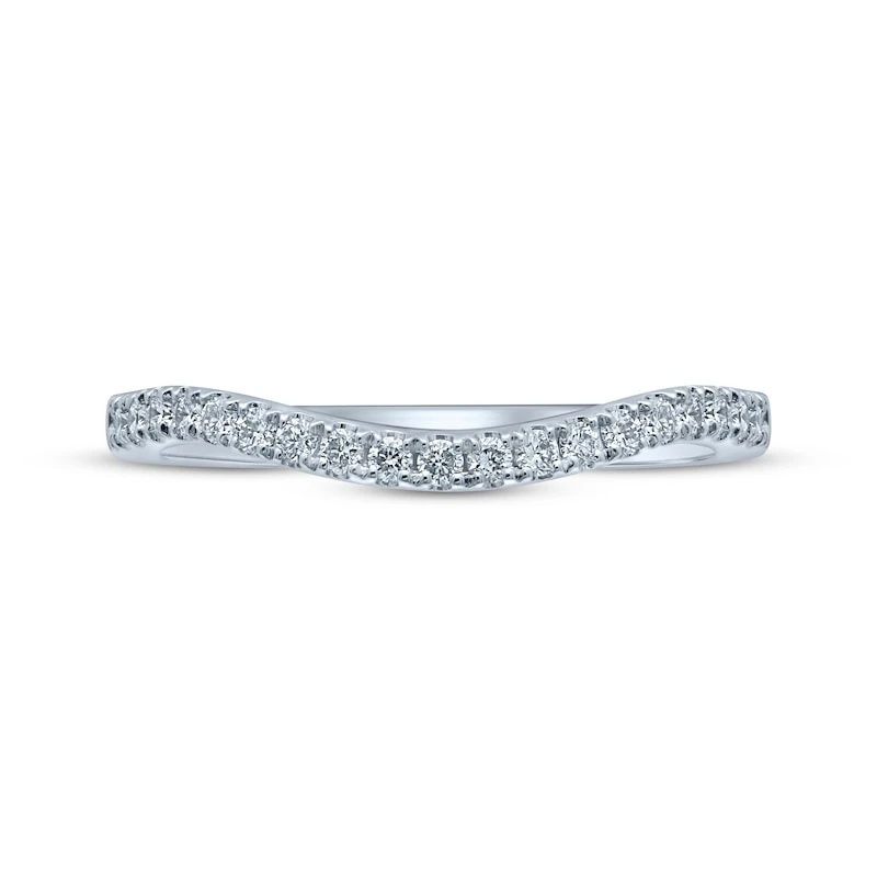 This timeless contoured anniversary band features a row of radiant round-cut diamonds framed by milgrain detailing. Styled in splendid 18K white gold, the ring has a total diamond weight of 1/4 carat. From the Monique Lhuillier Bliss collection, available exclusively at KAY. Please note: This ring is available in limited sizes. If you don’t see your size here, please visit a store to order your ring. Available online while supplies last. Previously Owned Treasures are not eligible for in-store pickup. Previously Owned Treasures may only be shipped either to your home address or to an alternate address. Price comparison based on new item pricing.